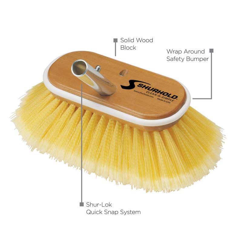 Built to Shurhold’s legendary standards, this 6-inch deck brush delivers powerful cleaning in a compact size. Designed to lock securely into any Shurhold handle, it features a solid wood block and a rubber wrap-around bumper to protect surfaces.